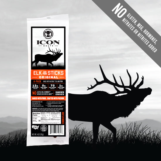 Elk Original Sticks: Our staple, traditional style. Loaded with high quality protein, and just savory enough to have some flavor, yet you can still really taste the flavor profile of the meat.